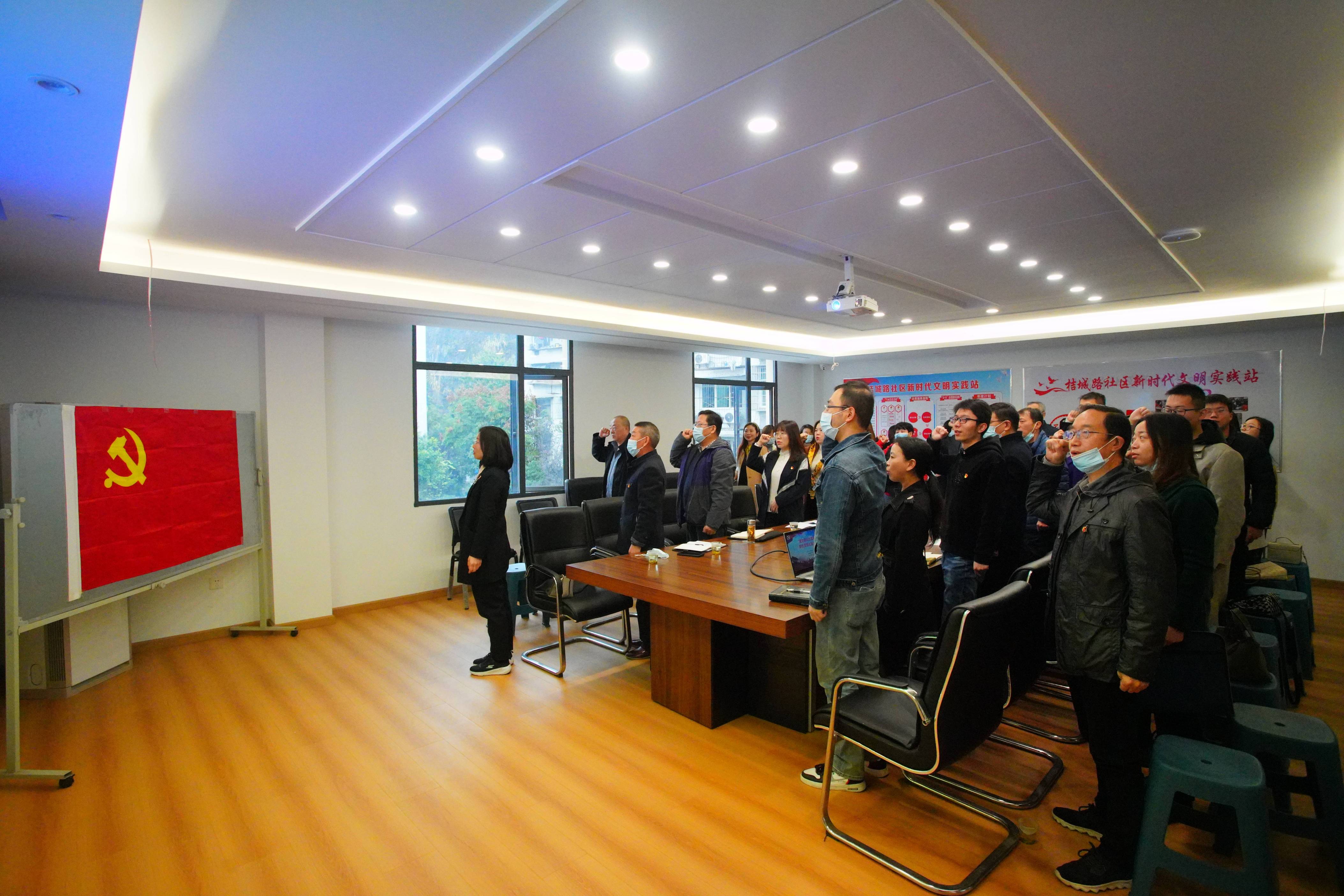 在桔城路社区二楼会议室,全体党员重温了入党誓词,共同学习了党的十九届六中全会公报。