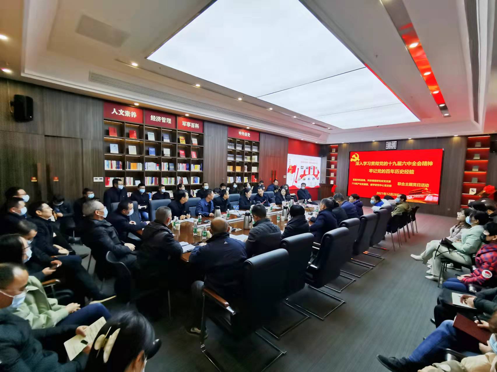 为深入学习贯彻党的十九届六中全会精神,12月28日,市科技局与710研究所联合开展了“牢记党的百年历史,深入学习贯彻六中全会精神”支部主题党日活动。科技局机关、科技情报所、710所产业发展部及磁学研究中心的全体党员参加了活动。