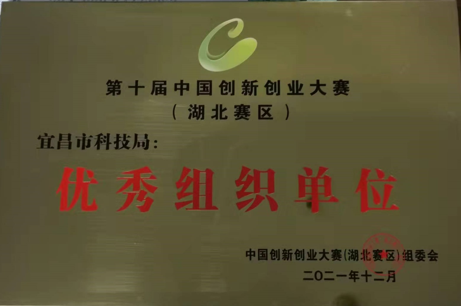 近期,中国创新创业大赛湖北赛区组委会办公室公布了第十届中国创新创业大赛湖北赛区优秀组织单位名单,宜昌市科技局名列其中,并被授予优秀组织单位牌匾。