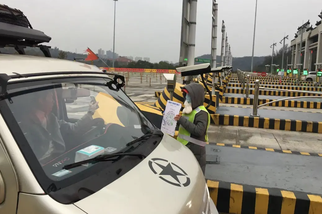 瑟瑟寒风中,志愿者们戴着红帽子,手举健康码“指示牌”在车流中穿梭,挨个窗口示意扫码、查验,对有异常的按要求及时处置。