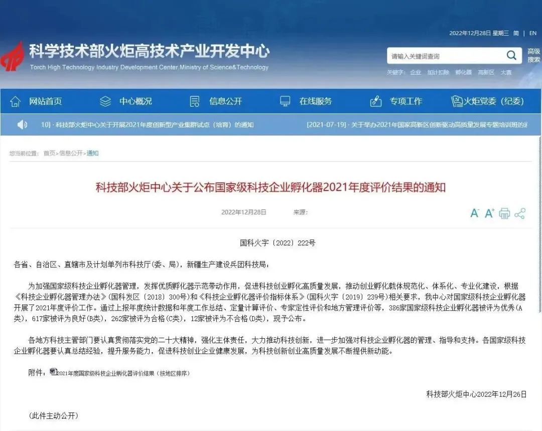 喜报!我市两家国家级孵化器考核优秀