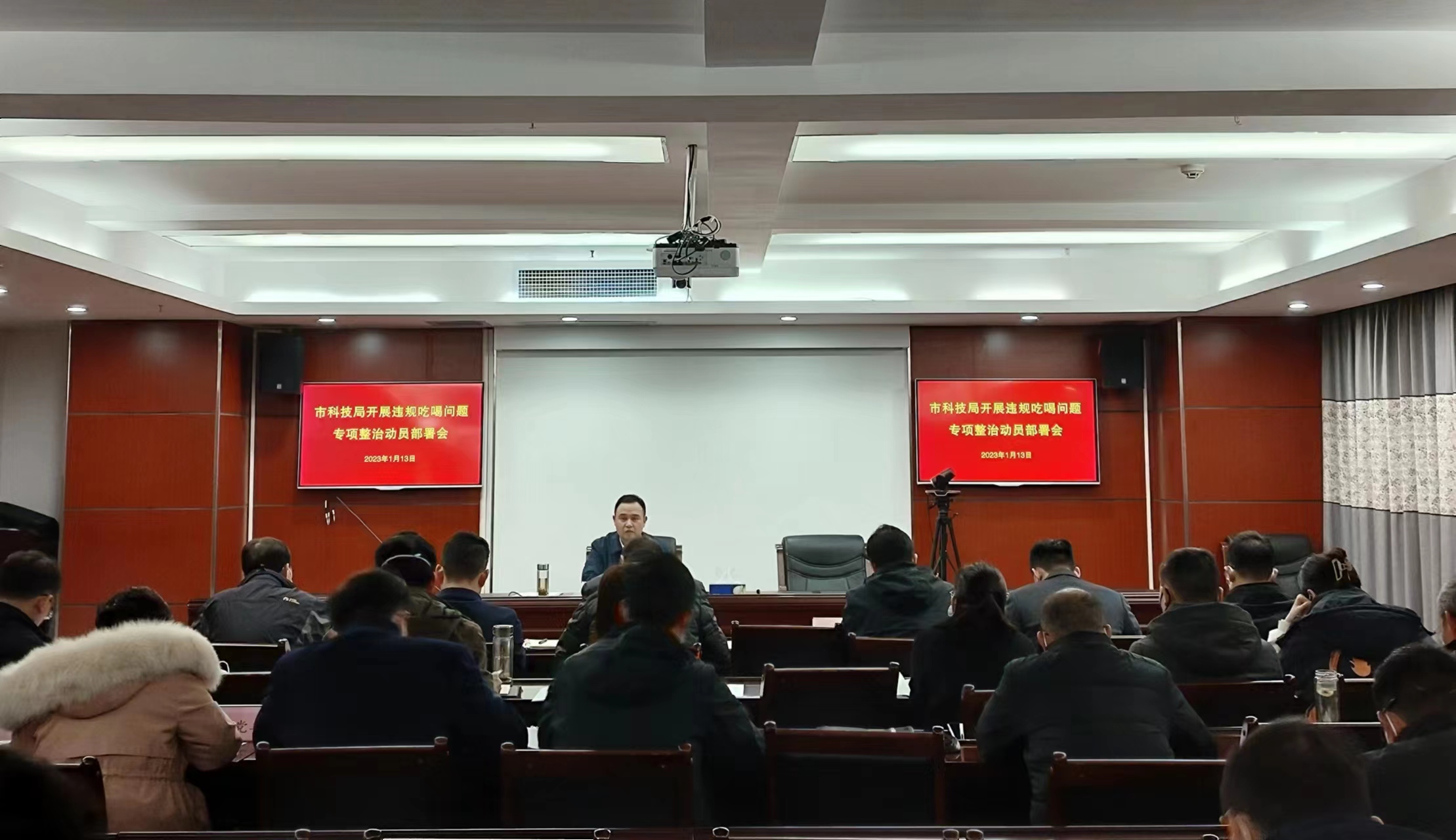1月13日,市科技局召开违规吃喝问题专项整治工作动员大会。局党组书记、局长危爱民同志主持会议,市科技局及局属单位全体干部职工参加会议。