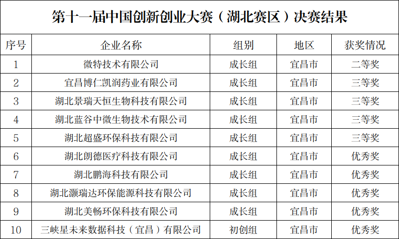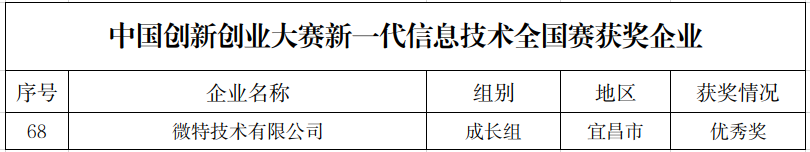 日前,第十一届中国创新创业大赛新一代信息技术全国赛在武汉顺利收官,微特技术有限公司获得优秀奖。此外,我市共有10家企业在湖北赛区决赛中获奖,其中:二等奖1家、三等奖4家、优秀奖5家,获奖企业总数、获得等次奖数均创历届大赛新记录,涵盖节能环保、生物医药、新一代信息技术和高端装备制造等技术领域。