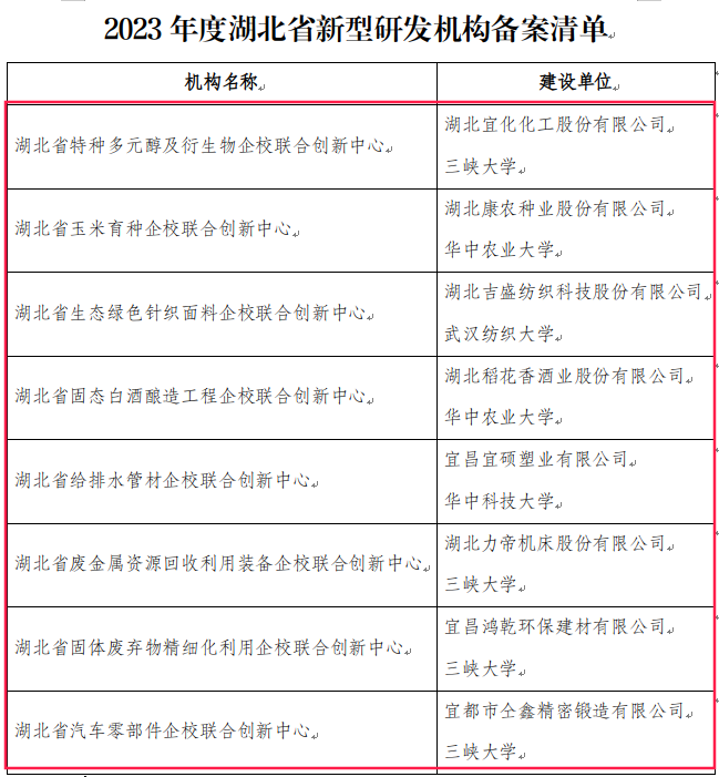 近日,湖北省科技厅公布2023年度拟备案省新型研发机构名单,我市湖北省特种多元醇及衍生物企校联合创新中心等8家新型研发机构获批备案,从而使我市的新型研发机构总数达到266家,新增数量位居全省第2位。
