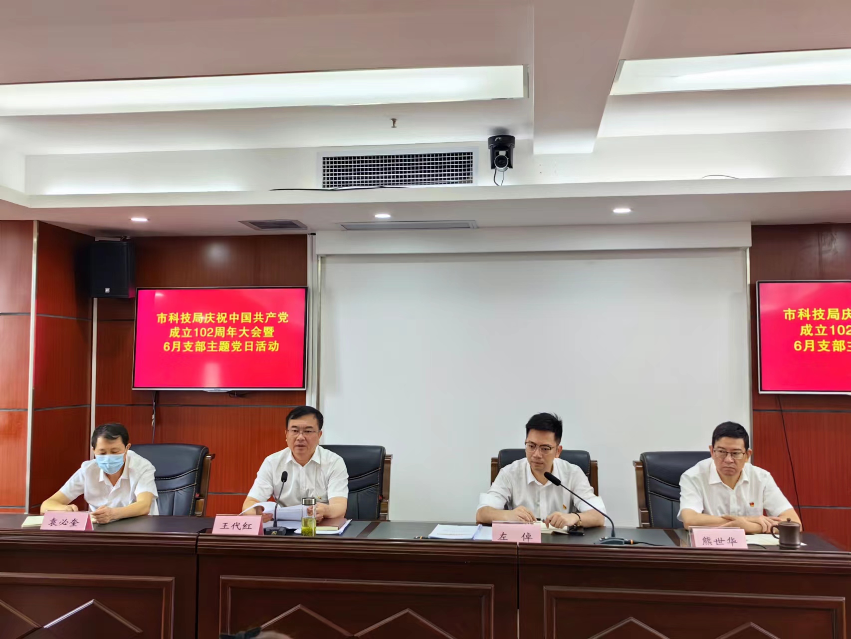 在中国共产党成立102周年之际,为表彰先进,激励广大党员干部奋发有为,营造创先争优浓厚氛围,深入贯彻落实党的二十大精神,6月30日,市科技局召开中国共产党成立102周年庆祝大会,市科技局机关党支部、市科技情报所党支部全体党员参会,受局党组书记、局长危爱民委托,局党组成员、副局长王代红主持会议。