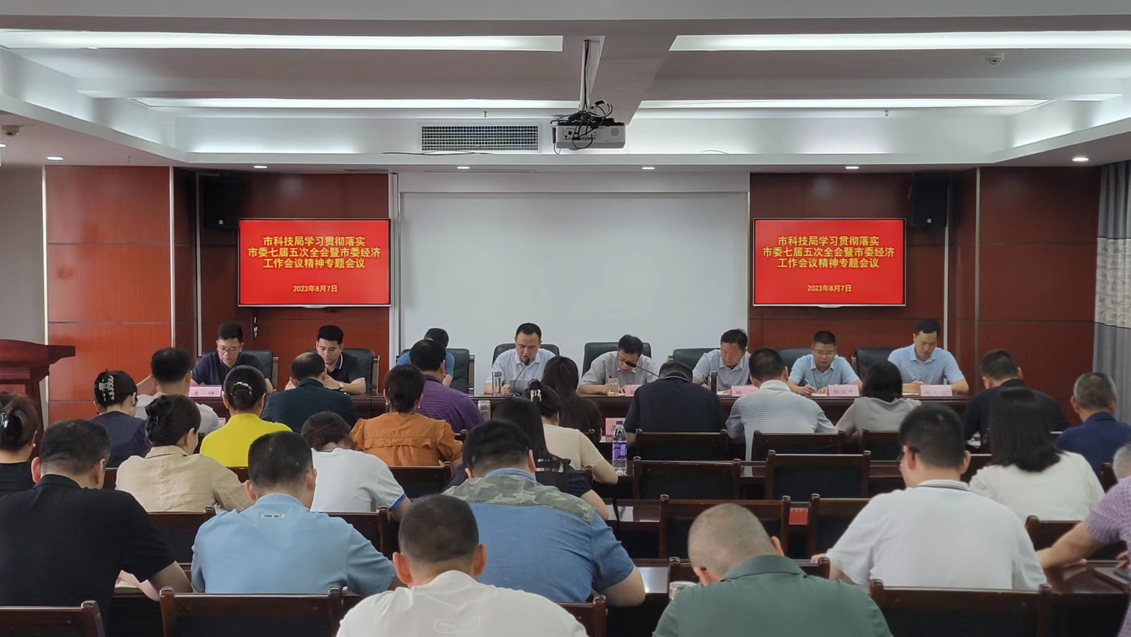 8月7日,市科技局召开传达市委七届五次全会精神会议,市科技局全体干部职工参加会议。局党组成员胡宜春主持会议。局党组书记、局长危爱民传达学习市委七届五次全体会议暨市委经济工作会议精神,并安排部署贯彻落实工作。