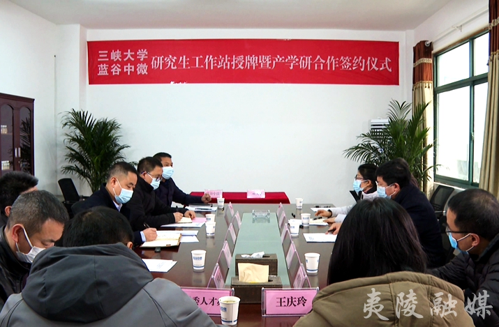活动现场,湖北蓝谷中微生物技术有限公司总经理蔡学敏介绍了公司发展情况,三峡大学生物与制药学院院长杨昌英介绍了产学研合作情况。三峡大学副校长陈和春为该企业颁授研究生工作站牌,双方现场签订产学研合作协议,并为企业员工王庆玲颁发研究生导师聘书。
